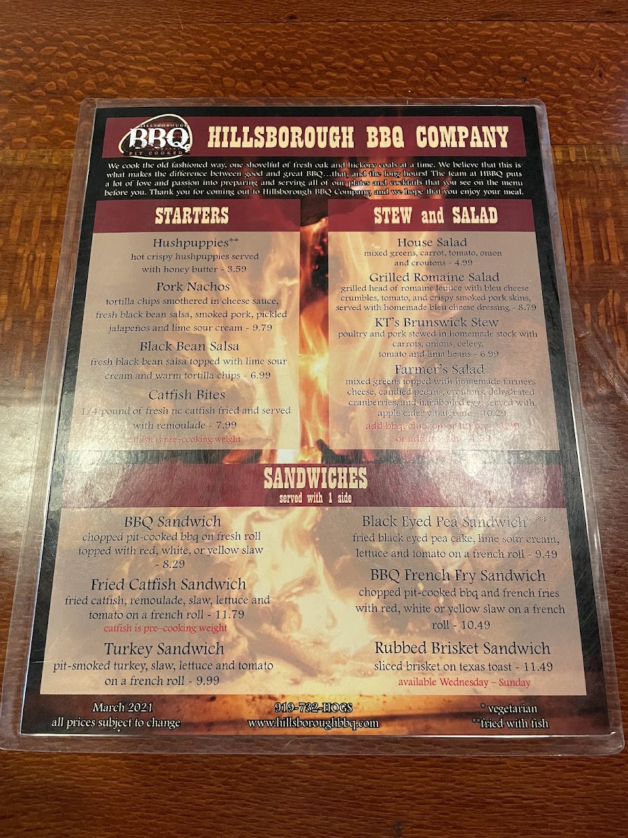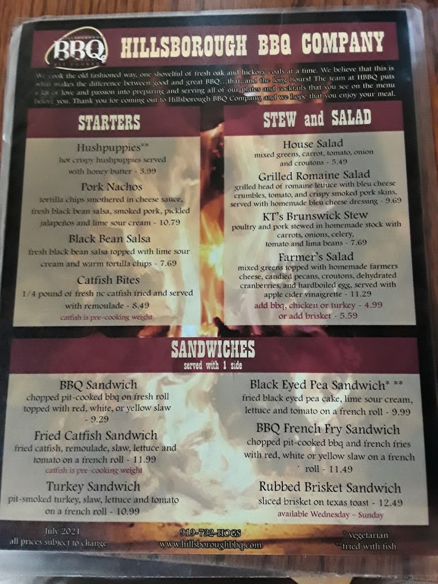 Welcome to Hillsborough BBQ Company, a barbecue haven nestled in the heart of Hillsborough, NC. This culinary gem, located at 236 S Nash St, offers a deliciously diverse menu that celebrates traditional BBQ. Customers rave about the tender cut meats, notably the mouthwatering beef brisket and succulent pulled pork, each smoked to perfection.